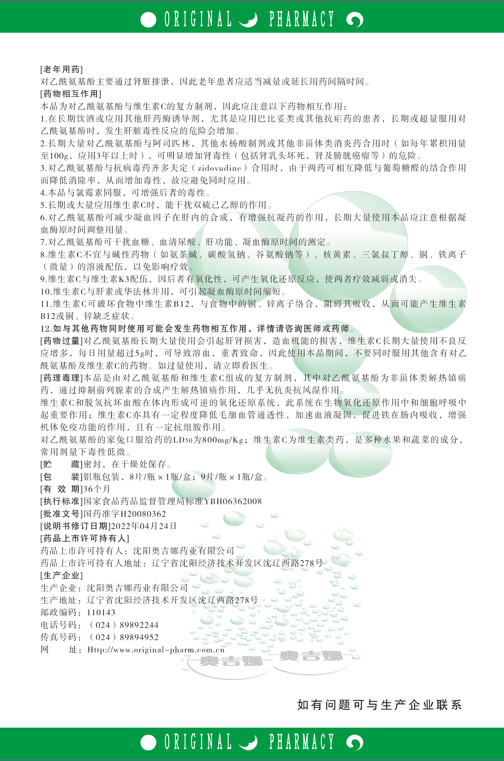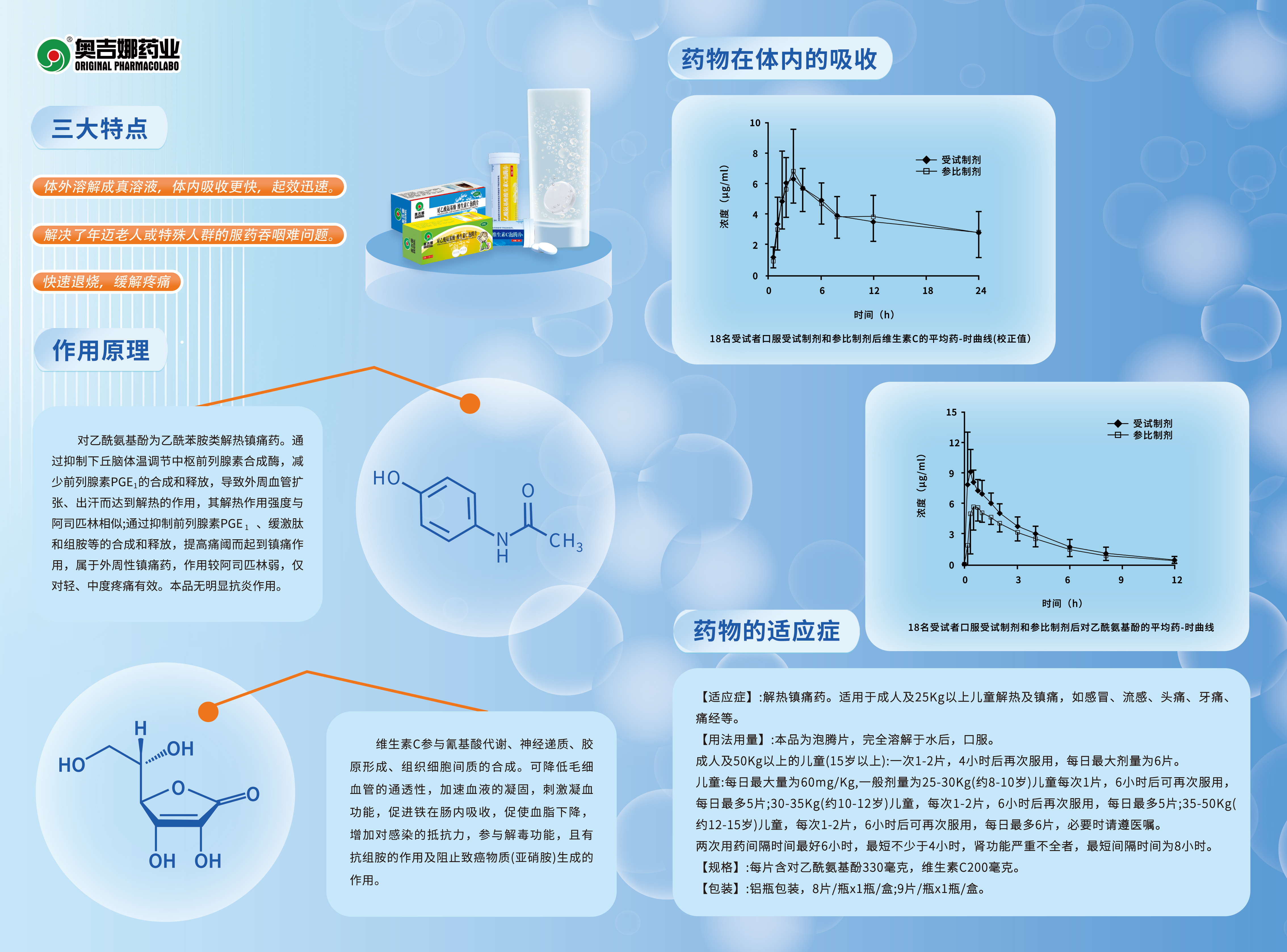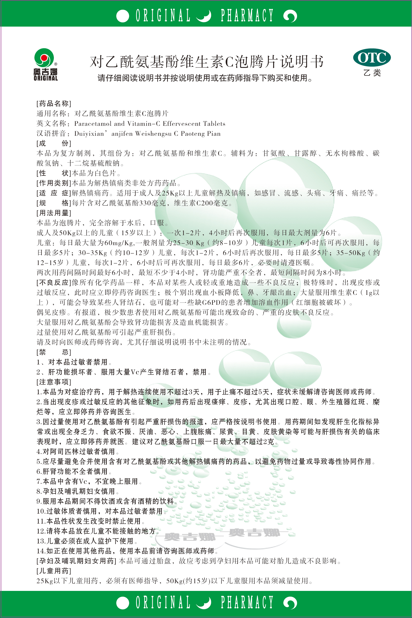 【成 份】 本品为复方制剂,其组份为:对乙酰氨基酚和维生素C。辅料为:甘氨酸、甘露醇、枸橼酸、碳酸氢钠、十二烷基硫酸钠。