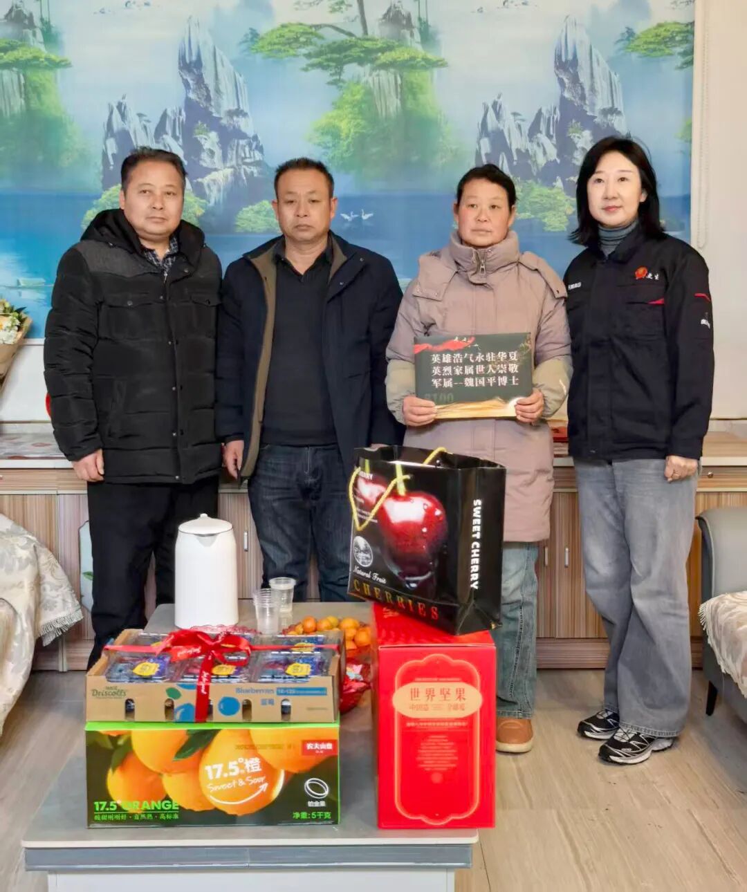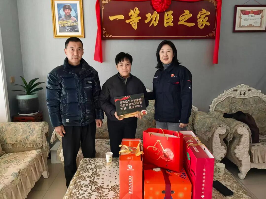 慰问当日,公司代表身着整洁工装,带着魏国平博士亲嘱的深情厚谊与精心准备的新春祝福,来到烈士家中。他们与烈士家属亲切交谈,细致询问他们的身体状况、生活情况以及年货准备,聆听他们回忆英雄生前的点滴,气氛庄重而温馨。